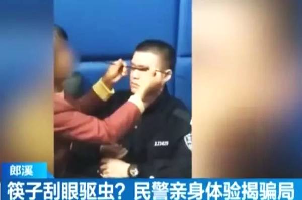 中國民間有一種延續了上百年的“筷子刮眼抓蟲”戲法,算得上是麻字門入門級騙局。此局中,騙子會說人眼中有寄生蟲,再用兩根筷子夾住“患者”眼瞼刮弄,便會真有“蟲子”出來,唬的圍觀者紛紛掏錢驅蟲。
